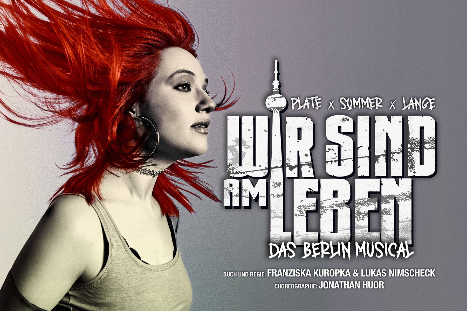 Berlin, 1990 – Das Jahr, das nicht nur eine Stadt, sondern auch das Leben der Geschwister Nina, Mario und ihrer Mutter Rosi kom-plett auf den Kopf stellt. Die Mauer ist gefallen, die Ordnung verschwunden – und das Chaos beginnt. Nach den Erfolgsmusicals „Ku’damm 56“, „Ku’damm 59“, „Romeo & Julia – Liebe ist alles“ und zuletzt „DIE AM-ME“ wagen sich Peter Plate und Ulf Leo Sommer nun an ihr bislang persönlichstes Projekt: „WIR SIND AM LEBEN“ ist ihr erstes vollständig selbst entwickeltes Musical – eine Geschichte über Familie, Freiheit und das Lebensgefühl im Berlin der frühen 90er-Jahre. Die Zeit ist geprägt von Euphorie – und von Angst. Von Auf-bruch – und von der alles überschattenden Realität von AIDS.