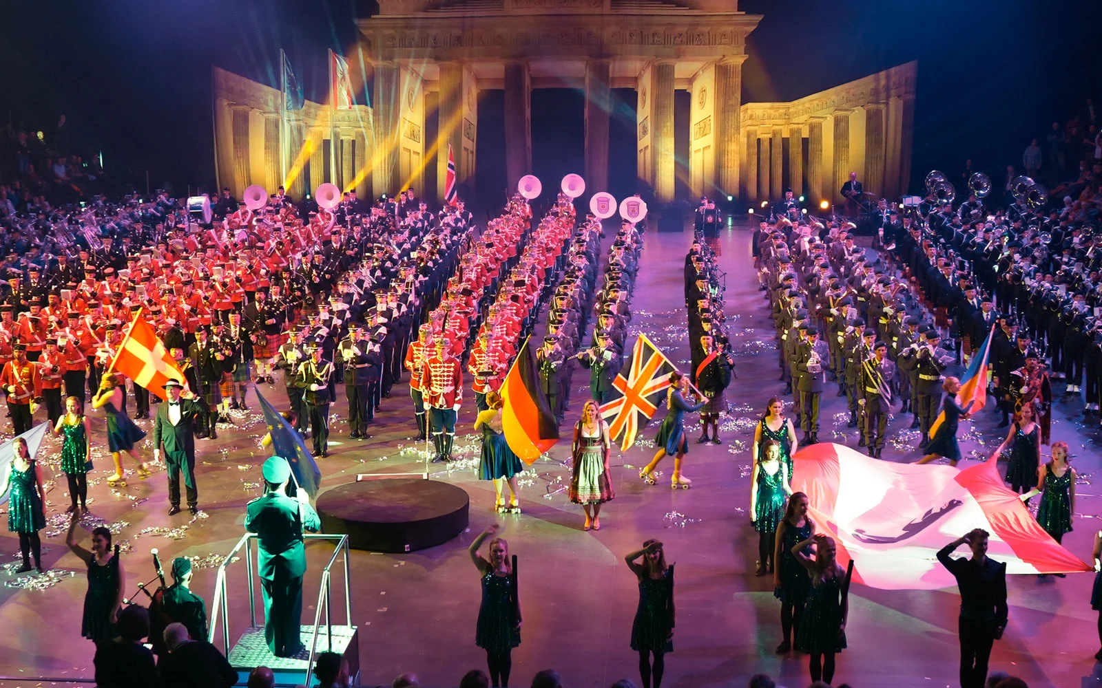 Das Berlin Military Tattoo ist die erfolgreichste Show ihrer Art in Deutschland, zählt zu den größten Veranstaltungen Europas und zieht Tausende Besucher in seinen Bann: Musikkorps, Massed Pipes and Drums, Chöre, Tänzer und Solisten der Spitzenklasse aus aller Welt präsentieren hervorragende Blasmusik mit grandiosen Choreographien. Vor einer beeindruckenden Nachbildung des Brandenburger Tors wird ein gigantisches Musikfest zelebriert: Emotional, geschichtsträchtig, völkerverbindend und unvergleichbar ist das Berlin Tattoo. Erleben Sie ein Musikfest mit mehr als 700 (!) Musikern, Dudelsackspielern, Trommlern, Tänzern und Solisten aus den verschiedensten Ländern. Live in der Hauptstadt Deutschlands – das Berlin Tattoo 2025.