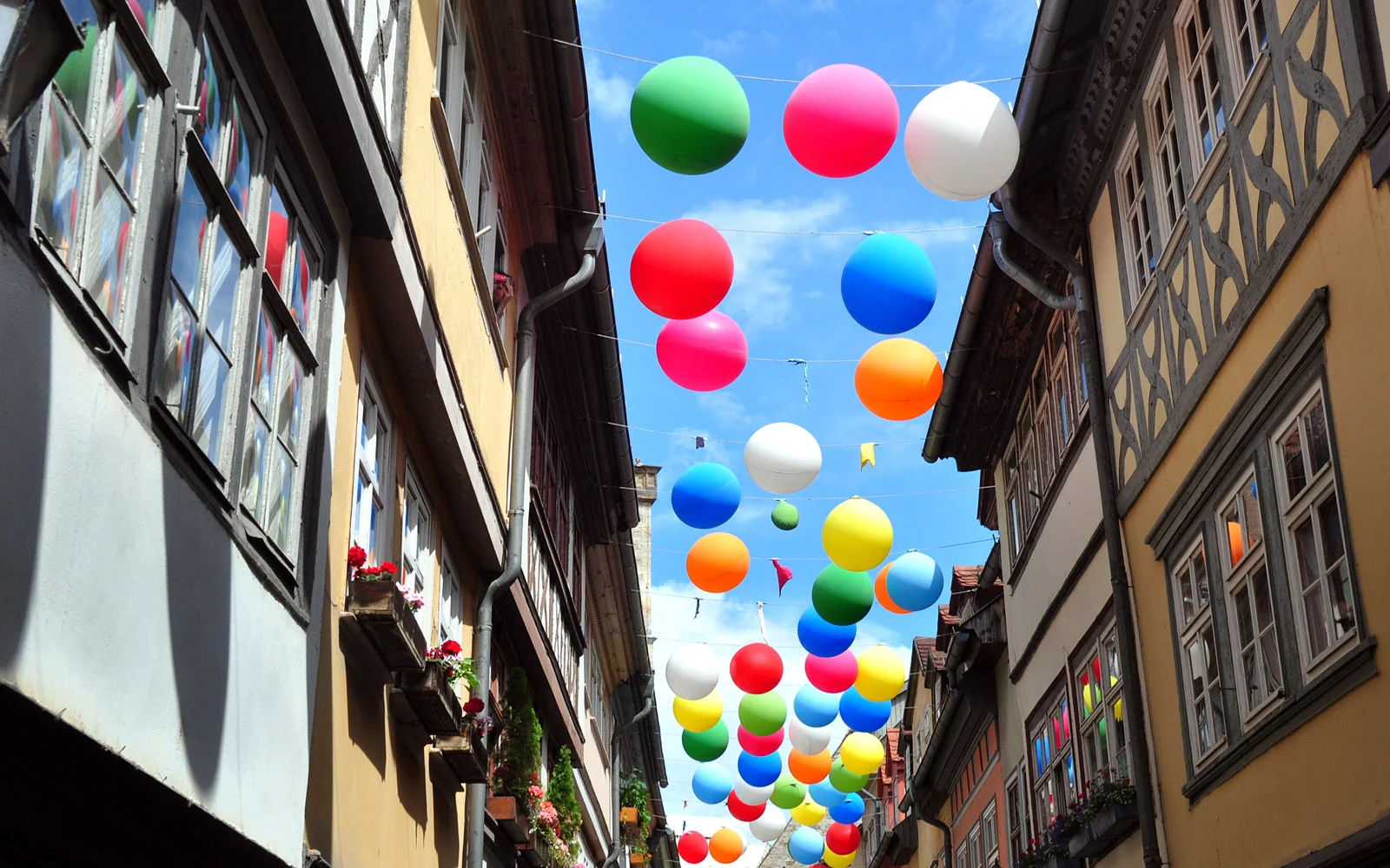 Mächtige Patrizierhäuser, Fachwerkbauten, mittelalterliche Gassen, der Mariendom und die Serverikirche ist die ideale Kulisse für das beliebte thrüinger Altstadtfest in Erfurt.