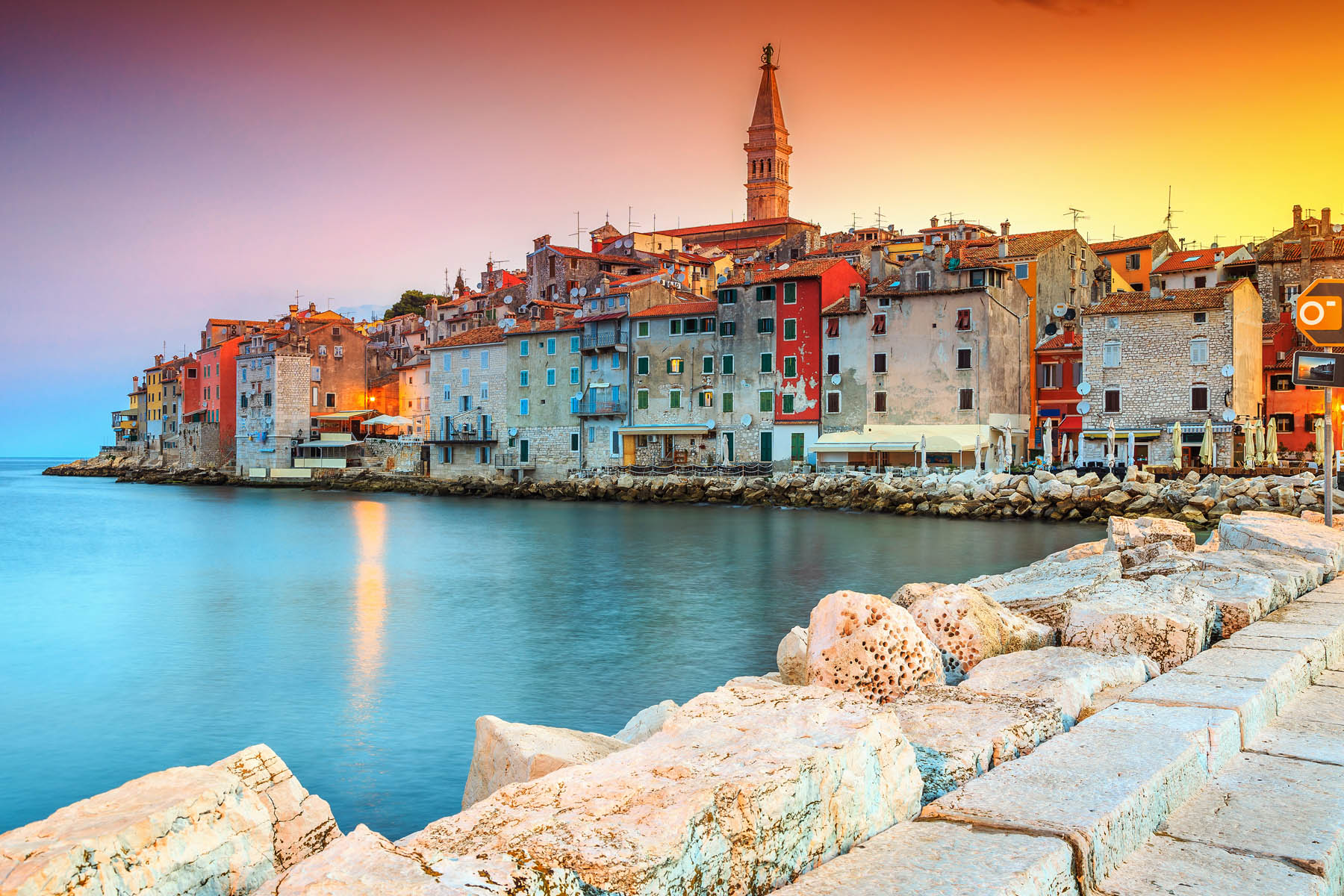 Heute gehen Sie an Bord und genießen eine abwechslungsreiche Schifffahrt entlang der istrischen Küste. Während Sie gemächlich durch diese beeindruckende Naturkulisse gleiten, genießen Sie ein Mittagessen an Bord. Gut gestärkt erreichen Sie Rovinj, eine der schönsten Städte an der Adria. Verwinkelte Gassen, bunte Häuserfassaden und die hoch über der Stadt thronende Kirche der Heiligen Euphemia prägen das Bild. Schlendern Sie durch die romantische Altstadt und genießen Sie einen unvergesslichen Blick über das Meer. Nach Ihren eigenen Entdeckungen geht es mit dem Schiff zurück, während die Küstenlandschaft noch einmal eindrucksvoll an Ihnen vorbeizieht.
