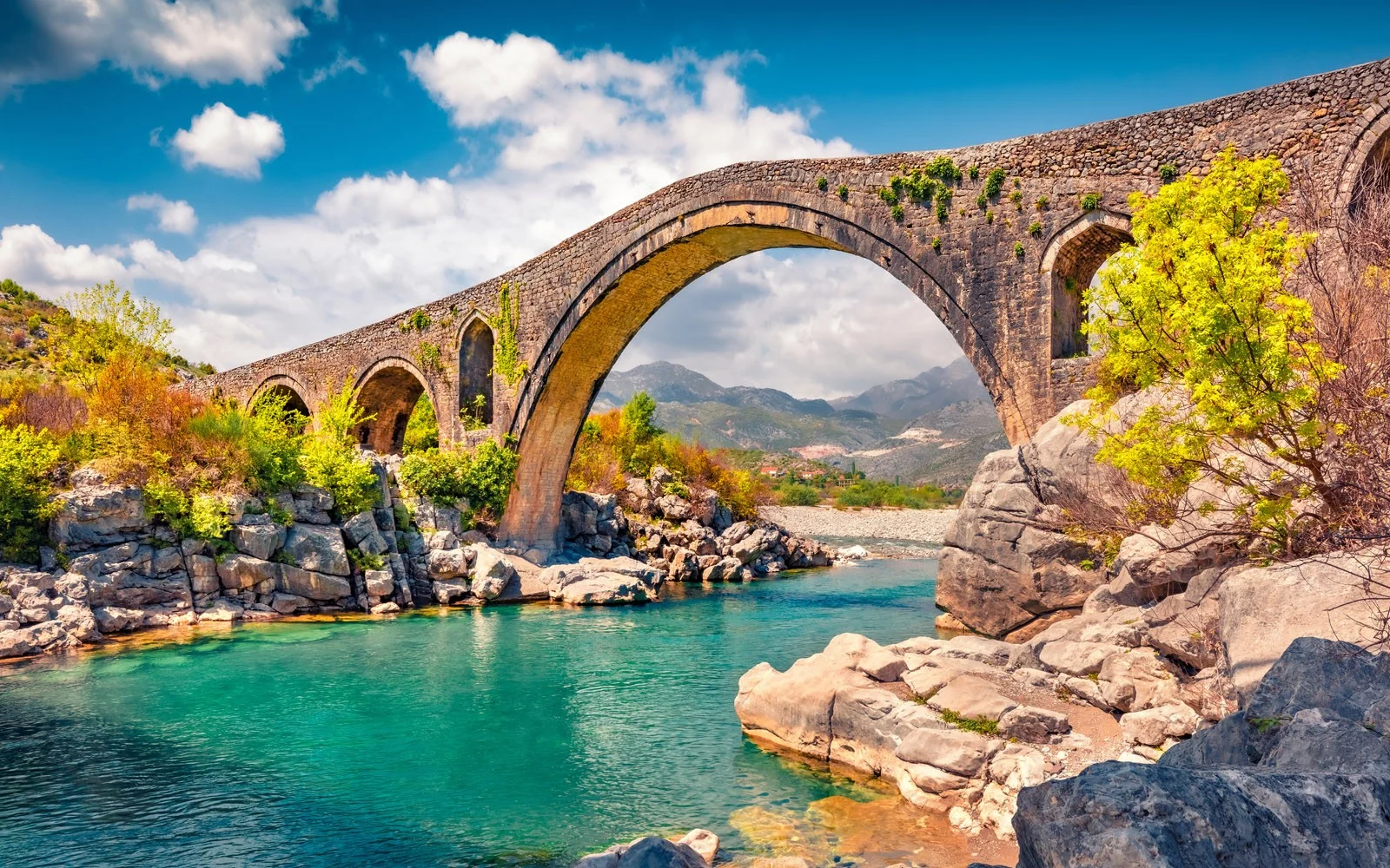 Ihre heutige Fahrt führt über schmale Straßen vorbei an beeindruckenden Bergketten nach Gjirokastra. Die Stadt mit ihrer malerischen Altstadt und den massiven Steinhäusern steht seit 2005 auf der Liste der UNESCO. Bei einem gemütlichen Spaziergang durch die osmanisch-geprägte Altstadt bekommen Sie einen authentischen Eindruck vom Leben im südlichen Albanien. Über kopfsteingepflasterte Gassen geht es ins Skenduli House, einem typischen mehrstöckigen Wohnhaus vergangener Zeiten, welches einen herrlichen Eindruck vom damaligen Leben bietet. Am Geburtshaus des kommunistischen Staatsgründers Enver Hoxha, das heute ein sehenswertes ethnografisches Museum beherbergt, machen wir einen kurzen Stopp. Fahrt zum Syri i Kaltër, dem Blauen Auge, der wasserreichsten Quelle des Landes. Dieser Ort mit seinem glasklaren, azurblauen Wasser ist ein beliebtes Ausflugsziel und wirkt sehr idyllisch.