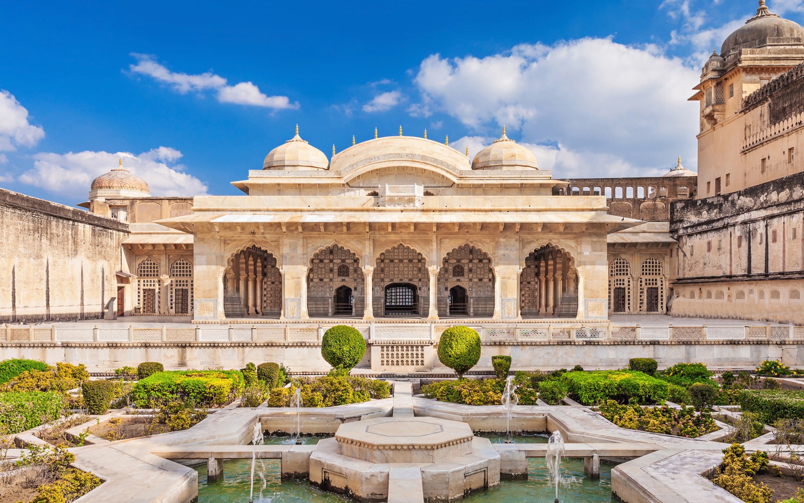 Am Morgen brechen Sie auf nach Jaipur. In kaum einer Stadt ist die Vergangenheit so präsent wie in Jaipur. Umgeben von zerklüfteten Bergen thront die Hauptstadt majestätisch über ihrem Wüstenstaat Rajasthan. Prächtige Paläste, Herrenhäuser und Gärten prägen das Stadtbild und zeugen von einer faszinierenden Vergangenheit. Die einst königlichen Residenzen sind heute lebendige Denkmäler der „Rosa Stadt“. Der Birla-Tempel (Laxmi Narayan-Tempel) inmitten üppiger Gärten gilt als modernes architektonisches Wunderwerk. Aus reinem weißem Marmor erbaut, begeistert er mit feinen Schnitzereien und wird nachts zum strahlenden Mittelpunkt der Stadt.