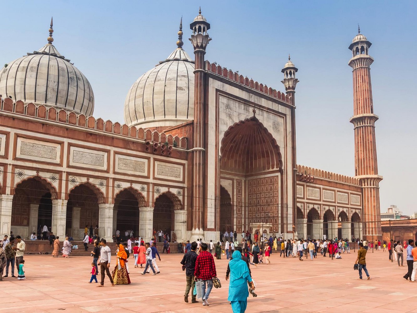 Am internationalen Flughafen von Delhi begrüßt Sie Ihr Reiseleiter, der Sie zu Ihrem Hotel bringt. Hier erwartet Sie ein stärkendes Frühstück, ehe Sie zu einer faszinierenden Stadtbesichtigung des alten und neuen Delhi aufbrechen. Zuerst passieren Sie das Rote Fort, eine imposante Palastanlage, die einst als Residenz der Mogulkaiser diente und heute als Geschäftsviertel der Stadt gilt. Danach besuchen Sie Raj Ghat, die Gedenkstätte des berühmten Widerstandskämpfers Mahatma Ghandi. Mit einem Tuktuk, der landestypischen Rikscha, entdecken Sie das lebhafte Treiben Chandni Chowks, einen der ältesten Märkte des alten Delhi. Im neuen Delhi besichtigen Sie den Gurudwara Bangla Sahib, einen Sikh-Tempel mit beeindruckender Gemeinschaftsküche, die täglich für über 35.000 Menschen Essen zubereitet. Das majestätische India Gate ist eine Gedenkstätte für 70.000 Soldaten, die im ersten Weltkrieg ihr Leben ließen. Den Abschluss bildet der Besuch des Qutab Minar, ein Sieges- und Wachturm mit kunstvollen Verzierungen und beeindruckender Stahlsäule.