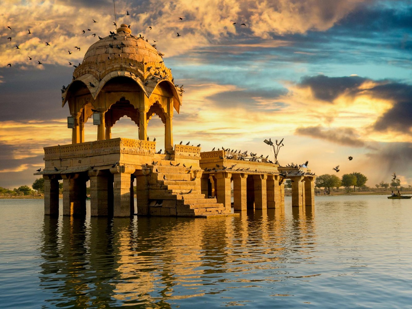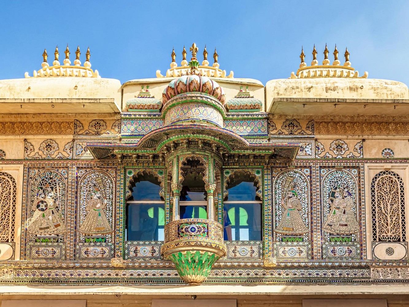 Ihr Tag beginnt mit einer Stadtrundfahrt durch Udaipur: Sie besuchen den beeindruckenden Stadtpalast, ein majestätisches weißes Monument und Zeugnis faszinierender Geschichte. Der Haupteingang, das dreifach gewölbte Tor namens Tripolia, wurde 1725 erbaut und ist ein architektonisches Wunderwerk. Besonders faszinierend ist der Suraj Gokhada, der Balkon der Sonne, von dem aus die Suryavanshi-Maharanas von Mewar in Krisenzeiten dem Volk erschienen, um dessen Vertrauen zurückzugewinnen. Nach dem Stadtpalast geht es weiter zum Jagdish-Tempel, einem prächtigen Bau aus dem 16. Jahrhundert, der Lord Vishnu gewidmet ist und als größter Tempel in Udaipur gilt. Am Abend erwartet Sie eine malerische Bootsfahrt auf dem Pichola-See (abhängig vom Wasserstand). Sie besuchen den dort gelegenen Inselpalast Jagat Niwas.