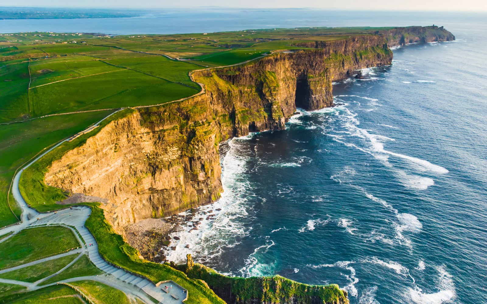 Bunratty Castle ist eine steinerne Burg aus dem Jahr 1270, die während der irisch-normannischen Auseinandersetzungen im Jahr 1318 vollständig zerstört wurde. Um die Burg herum befindet sich ein Freilichtmuseum mit irischen Bauern- und Stadthäusern, in denen traditionelles irisches Handwerk feilgeboten wird. Zur Mittagszeit wird Ihnen heute ein traditionelles Gericht serviert. Ähnlich dem Bortsch der Russen und der Bouillabaisse der Franzosen, ist der Seafood Chowder eine landestypische Fisch-Spezialität. Ihr nächstes Ziel sind die beeindruckenden Klippen von Moher. Mit 7 km Länge und einer maximalen Höhe von 215 m stellen sie eine der Hauptattraktionen des Landes dar. Bei klarer Sicht können Sie im Westen bis zu den Aran-Inseln, im Süden bis zu den Bergen Kerrys und im Norden bis zu den Hügeln von Connemara blicken. eiterfahrt durch die Burren-Region, einem ausgedehnten Kalkplateau, welches zum Nationalpark erklärt worden ist.