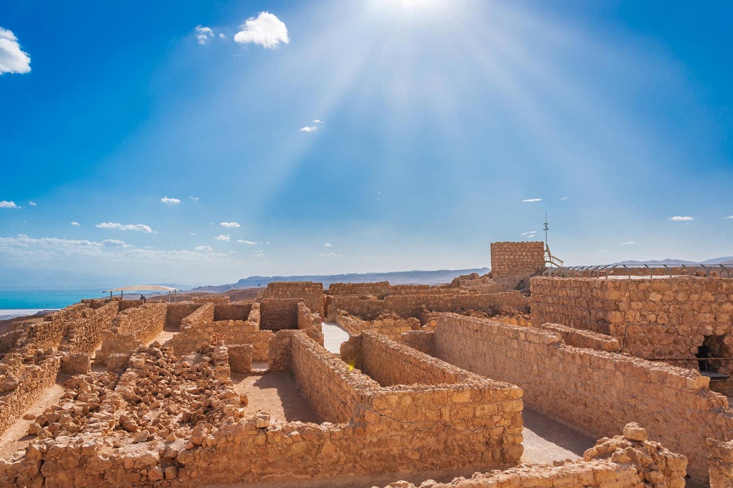 Fahrt zum Toten Meer, dem tiefsten Punkt der Erde. Auffahrt mit der Seilbahn zu den Ruinen der Festung Massada, der letzten Hochburg des jüdischen Aufstandes im Kampf gegen Rom. Besichtigen Sie die Ausgrabungen und genießen Sie den Panoramablick auf die römischen Lager und das Tote Meer. Anschließend steigen Sie zum Ufer hinab und haben die Möglichkeit, im Toten Meer zu schwimmen. Rückfahrt nach Tel Aviv, Abendessen und Übernachtung.