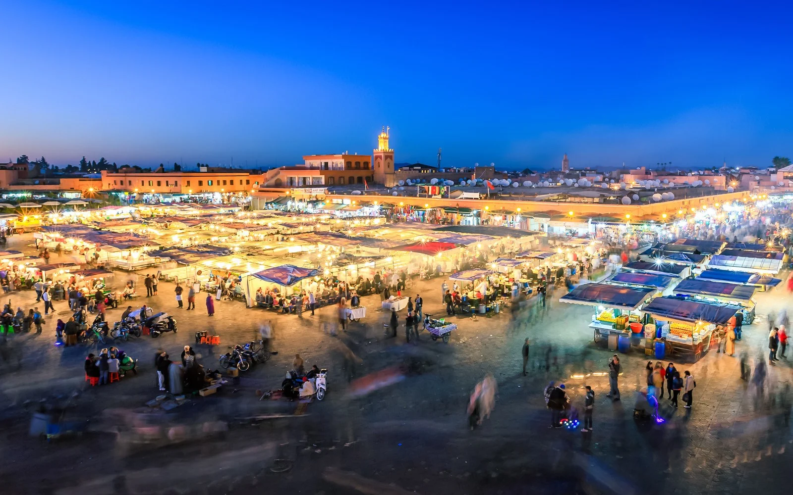 Heute entdecken Sie die herausragenden Sehenswürdigkeiten der Königsstadt, bekannt für ihre prächtigen Paläste und beeindruckenden Gartenanlagen. Nach einem ausgiebigen Frühstück beginnen Sie Ihren Tag mit einem Besuch der königlichen Menara-Gärten. Danach führt Sie Ihre Tour in die von historischen Stadtmauern umgebene Medina, wo Sie die Gräber der Saadier-Dynastie und den beeindruckenden Saal der Zwölf Säulen besichtigen. Weiter geht es zum prachtvollen Bahia-Königspalast. Anschließend genießen Sie einen Spaziergang durch das labyrinthartige Netz der faszinierenden Altstadtgassen, vorbei an den lebhaften Souks der Händler und Handwerker, bis Sie schließlich vor dem berühmten Minarett der Koutoubia-Moschee stehen. Ihren Tag beschließen Sie auf dem zentralen Platz Djemaa el-Fna, wo Sie das bunte Treiben von Gauklern, Musikern und Schlangenbeschwörern verfolgen können.