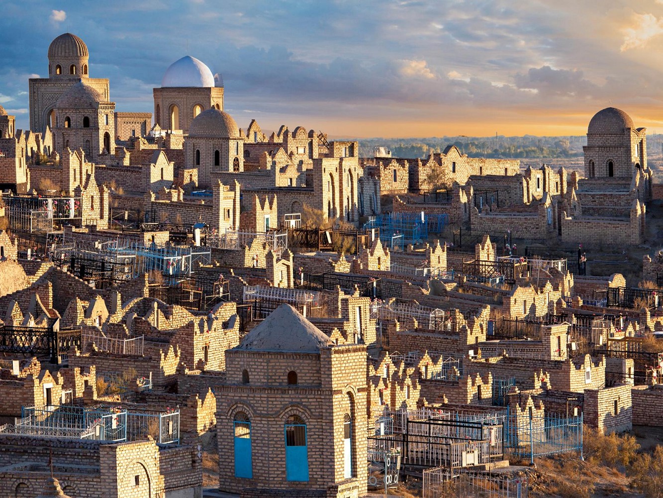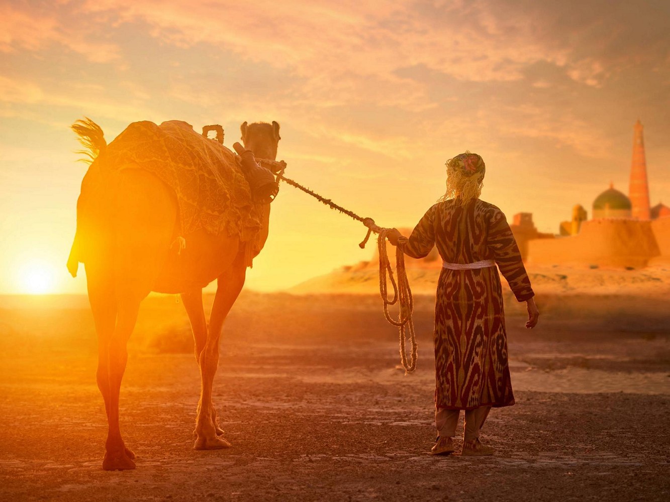 Nach dem Frühstück Flug nach Urgentsch und Weiterfahrt in die Oase Chiwa. Die Lehmstraßen und noch heute zum Straßenbild gehörenden zweirädrigen Eselskarren, vermitteln Ihnen einen Eindruck der seit dem Mittelalter unveränderten Lebensweise. Bewundern Sie auf Ihrem Rundgang durch das historische Zentrum die orientalischen Ornamente und türkisblauen Fliesen der reich verzierten Bauwerke, und überzeugen Sie sich davon, dass die Altstadt von Chiwa nicht umsonst als “Freilichtmuseum” bezeichnet wird. Sie sehen u. a. die Dschuma-Moschee, die berühmt ist für ihre über 200 mit kunstvollen Schnitzereien verzierten Säulen, das Pachlavon-Machmud-Mausoleum, Medrese und Minarett von Islam Khodsha sowie den Tasch-Hovli-Palast. Sie finden mit Sicherheit immer wieder neue Motive zum Fotografieren und Plätze zum Verweilen in dieser märchenhaften Stadt. Übernachtung in Chiwa.
