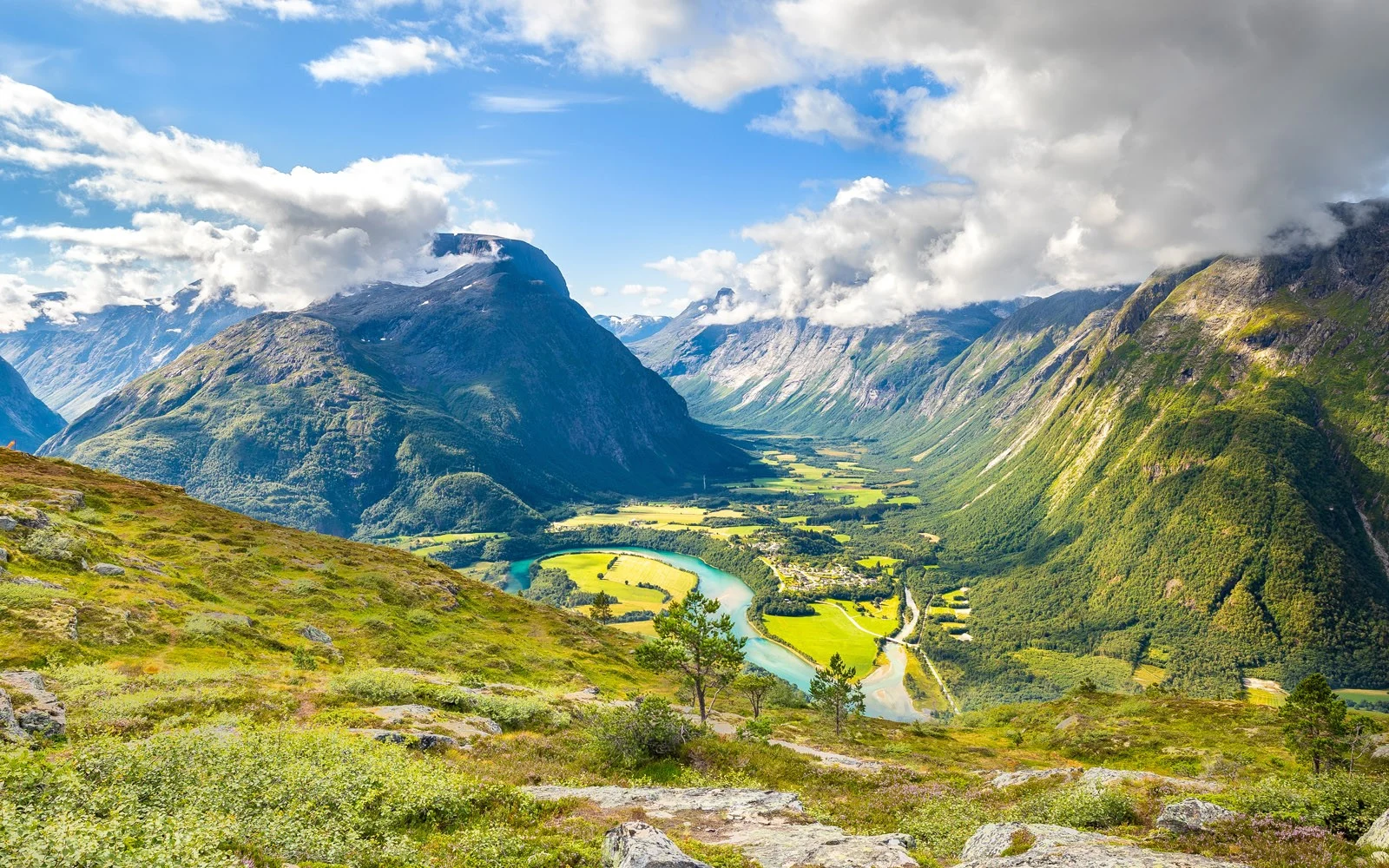 Willkommen in der „Stadt der Rosen“! Molde liegt am Nordufer des gleichnamigen Fjords, wodurch sie, neben den Ausläufern des Golfstroms, ideale Bedingungen für die prächtigsten Rosen bietet. Von hier aus empfehlen sich vielerlei Ausflüge: Eine Wanderung am Berg Varden mit herrlicher Aussicht, die Besichtigung des Romsdalsmuseums, eine landschaftlich vielfältige Fahrt zum Fischerdorf Bud oder eine spektakuläre Fahrt vorbei an der Gudbrandsschlucht elf Serpentinen die Trollstigstraße hinunter nach Andalsnes – Sie haben die Wahl! Andalsnes erreichen Sie mit der MS ARTANIA am Nachmittag. Umgeben von einer atemberaubenden Bergwelt sollten Sie dieses Panorama auf jeden Fall von oben erleben, z. B. auf der Aussichtsplattform Rampestreken mit bis zu 550 Meter über dem Meeresspiegel. Eine tolle Aussicht genießen Sie auch, wenn Sie mit der Romsdaler Gondel auf den Berg Nesaksla fahren. Oder Sie nehmen nach einer beeindruckenden Panoramafahrt bequem die Raumabahn von Dombås nach Åndalsnes.